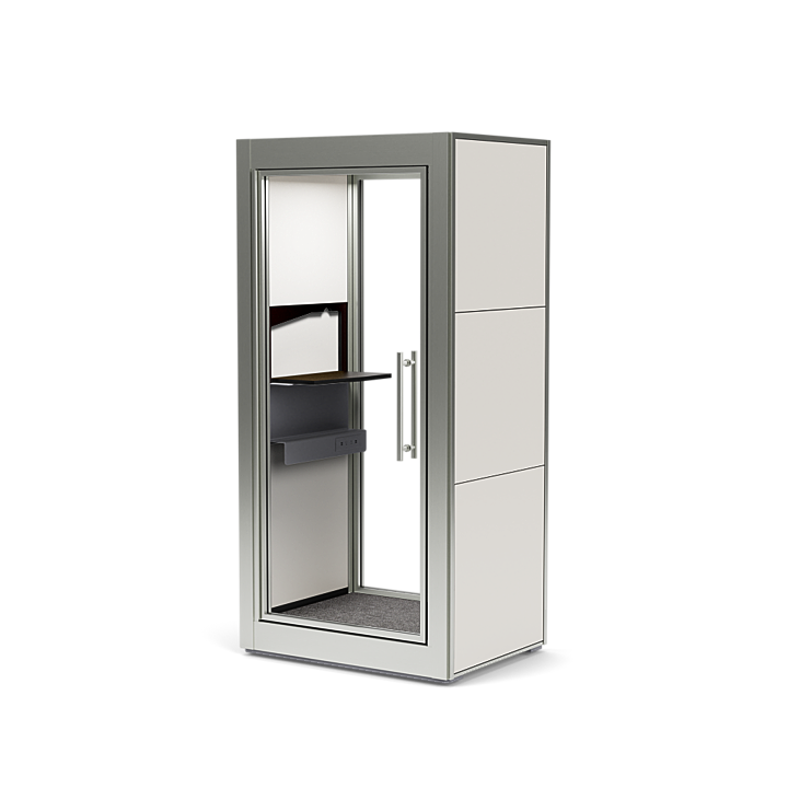 Phone booths offer a private and soundproof space for making phone calls or participating in video conferences, without disturbing others in the surrounding area. Particularly useful in open-plan offices or noisy public spaces, these booths provide an ideal solution. Specifically tailored for standing use, the Single allows individuals to quickly step in, make important calls, or complete tasks without the need for a traditional desk or seating arrangement. It offers convenience and efficiency for busy professionals on the go.